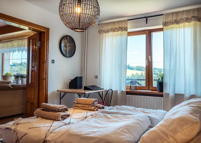 Consisting of a balcony and a terrace, Agroturystyka U Czadeczki Apartment is fitted with a writing desk, as well as modern amenities like a flat-screen TV with satellite channels. Along with garden views, guests will also appreciate a fireplace, which enhance the overall experience.